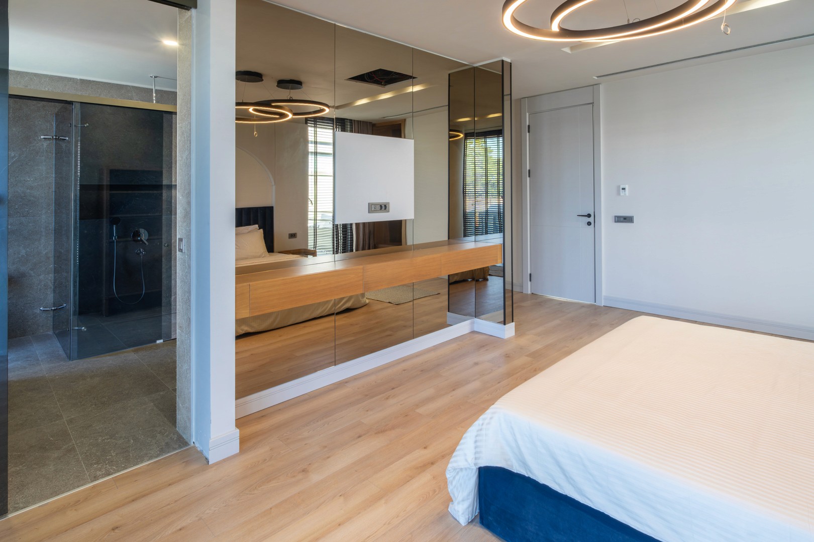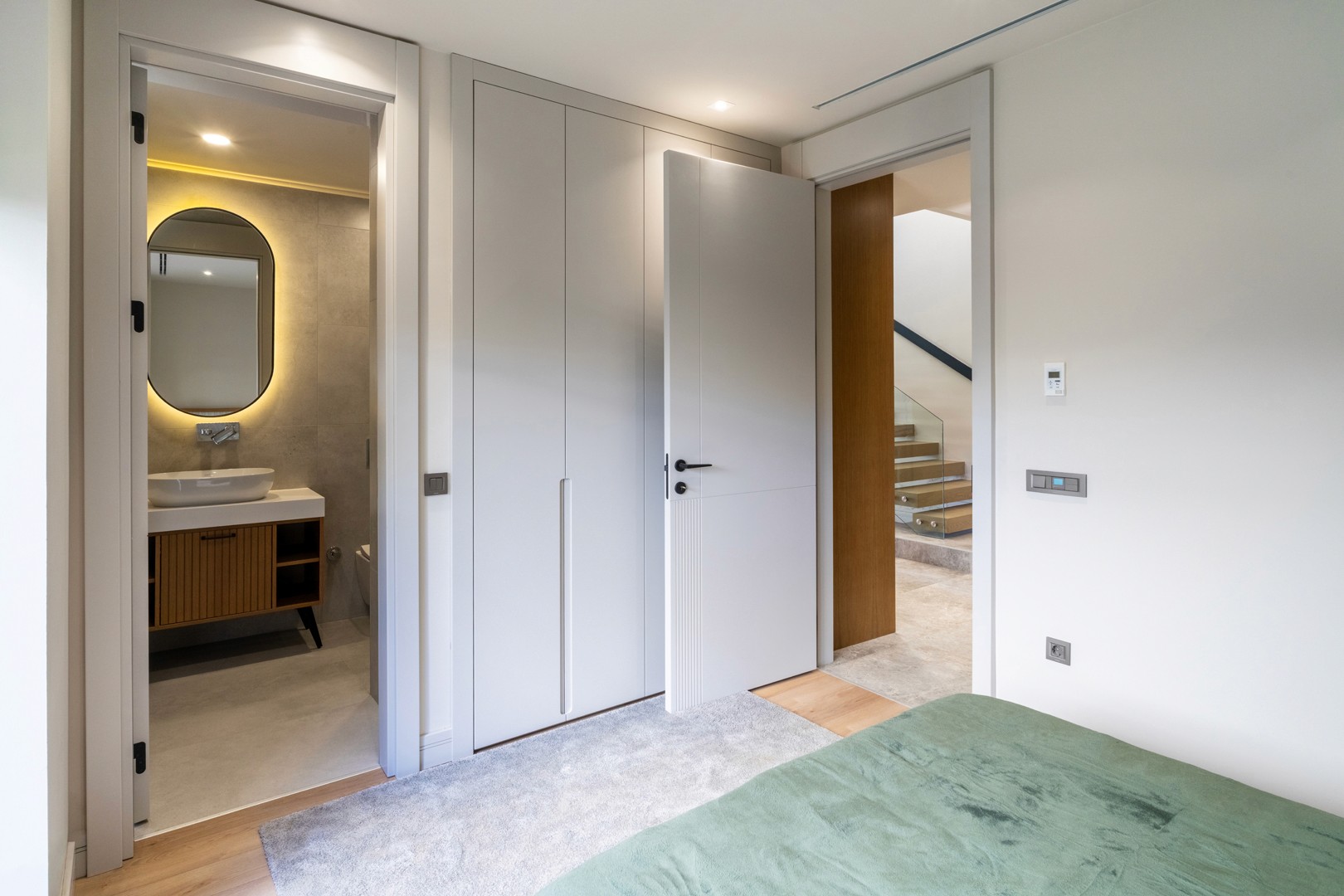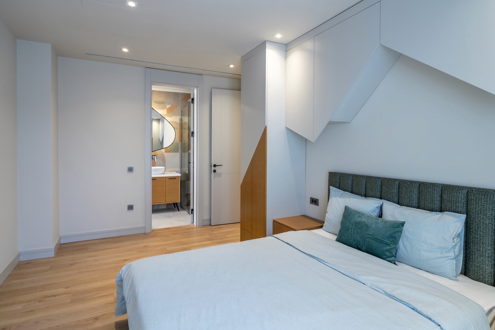 Üst katta ebeveyn yatak odası, bu odaya ait özel banyo/WC ve giyinme odası bulunmaktadır. Ayrıca iki adet çocuk odası, her çocuk odasına ait bağımsız banyolar, bir çalışma odası ve bir çamaşır odası üst katta konforunuz düşünülerek planlanmıştır. Ebeveyn süiti, geniş giyinme alanı ve özel banyosuyla tam bir özel yaşam alanı sunar.