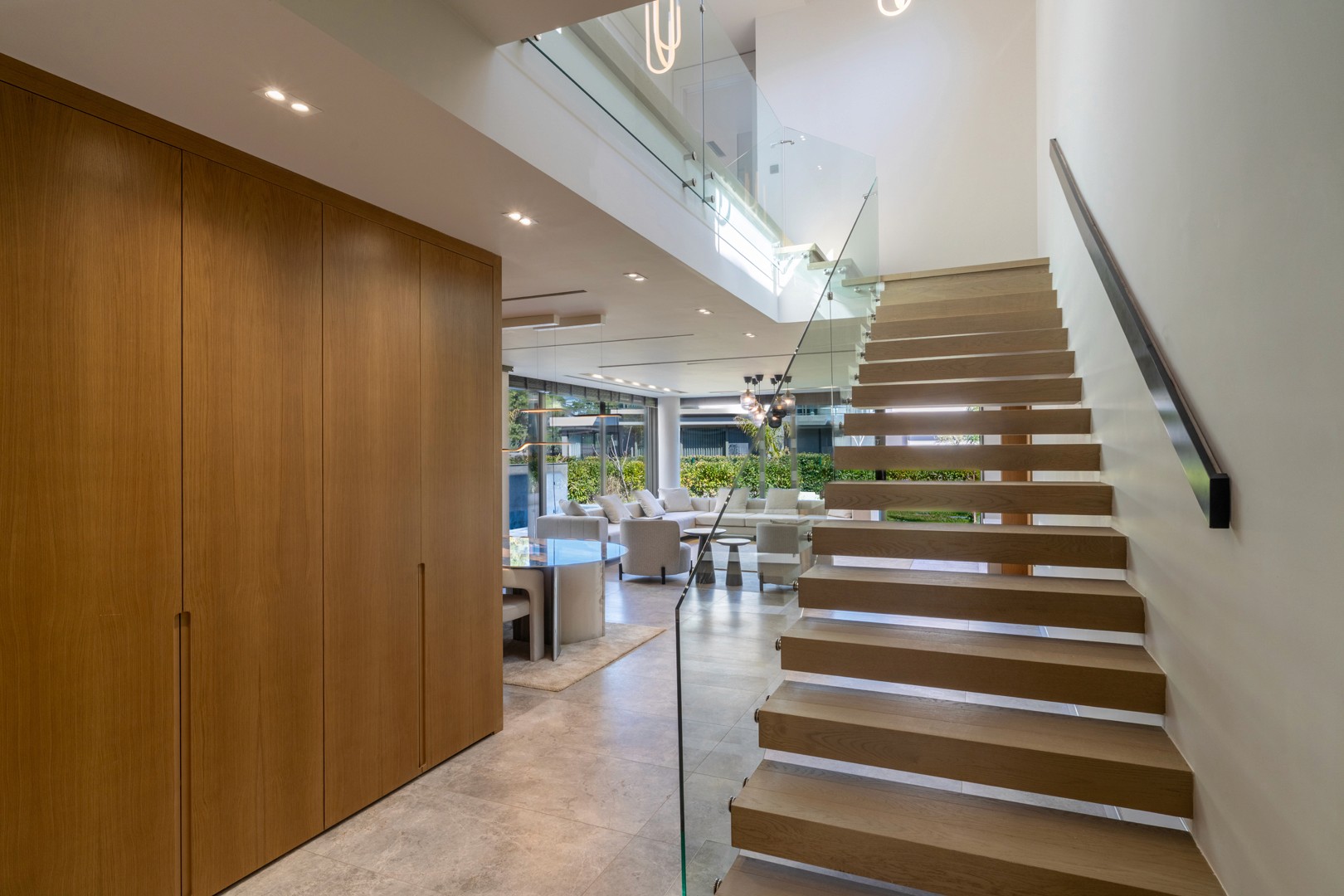 Giriş katta geniş ve ferah bir salon, modern açık mutfak, misafir yatak odası ve bu odaya ait özel banyo/WC yer almaktadır. Salondan doğrudan kış bahçesine geçiş sağlanır; kış bahçesi dört mevsim kullanılabilecek şekilde cam sistemlerle çevrilidir. Misafir yatak odasından doğrudan hobi bahçesine çıkış bulunmakta olup, doğayla iç içe bir yaşam alanı sunmaktadır.