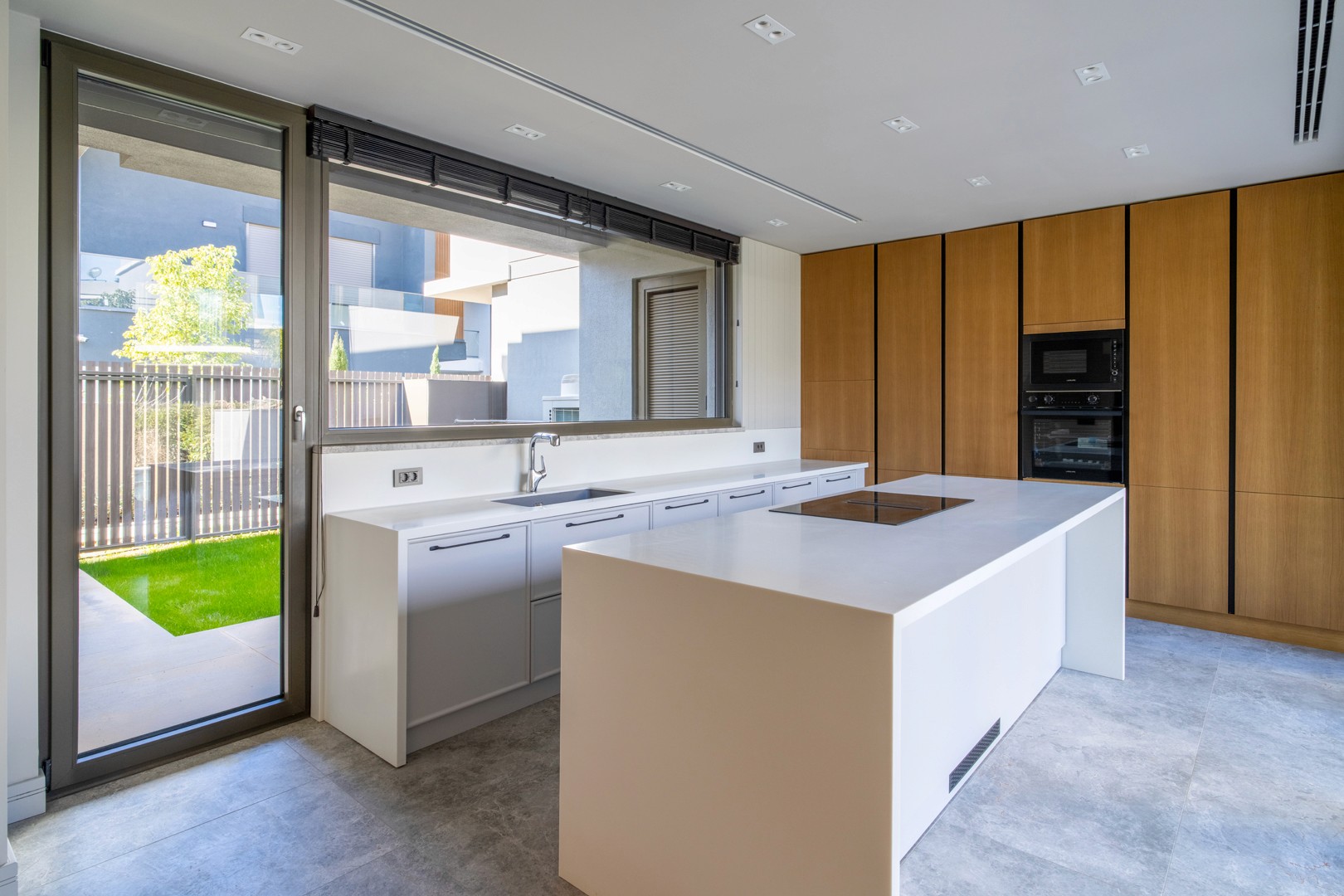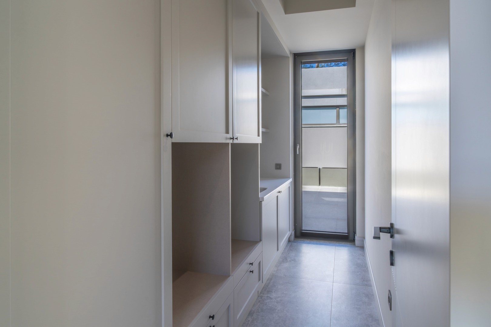 Özel tasarım mutfak dolapları ve kompozit tezgâh.